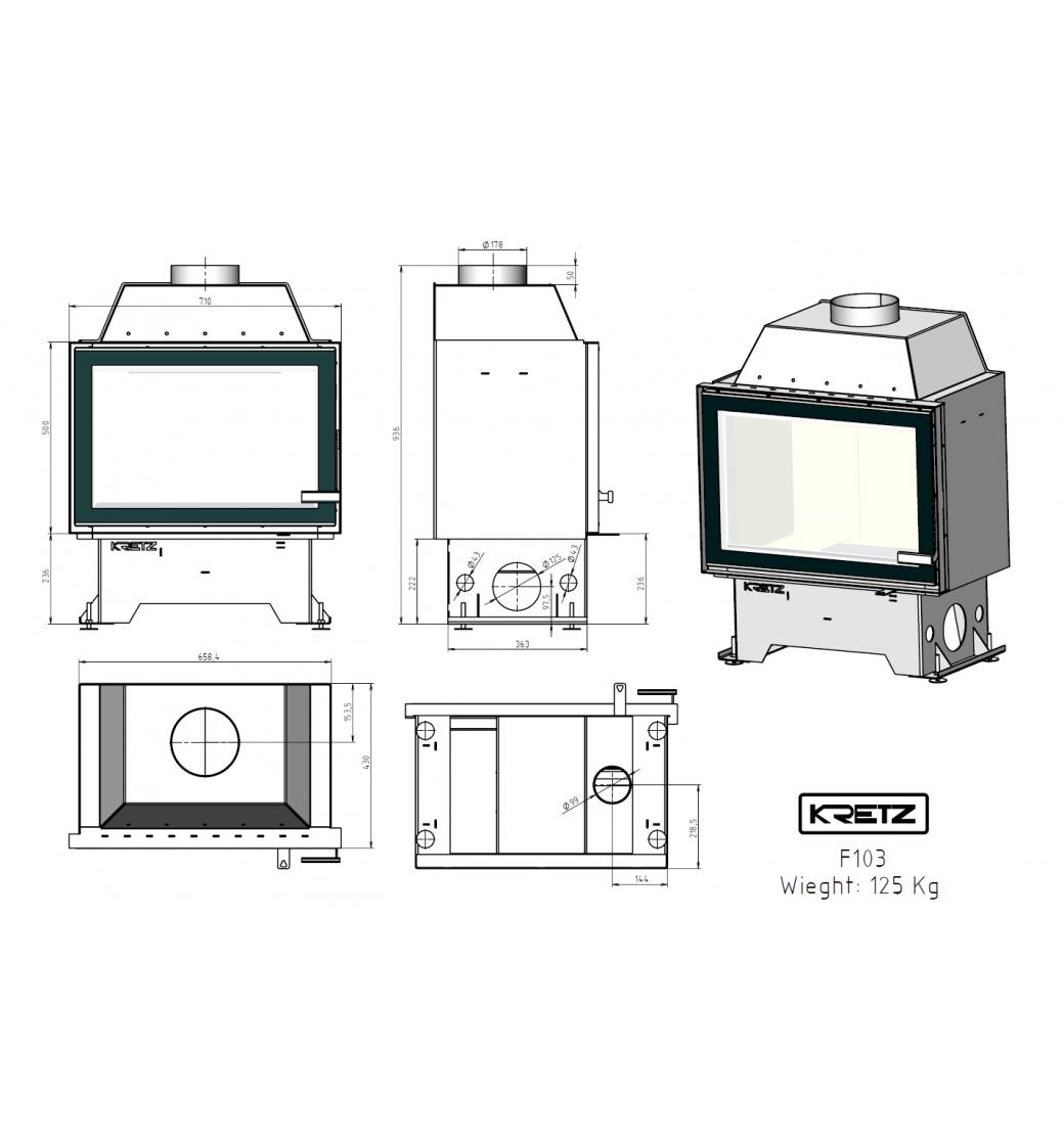 TEPLOVZDUŠNÁ KRBOVÁ VLOŽKA KRETZ F 103 S ROVNÝM PROSKLENÍM.