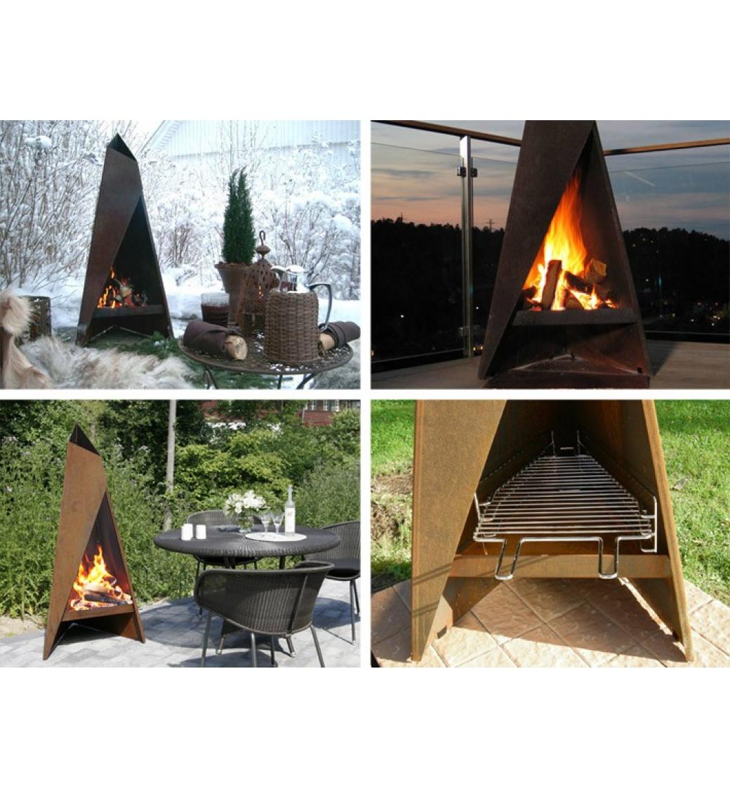 Venkovní krby a grily Tipi jsou unikátní designové venkovní krby a zároveň i venkovní grily díky volitelnému vkládanému grilovacímu roštu.