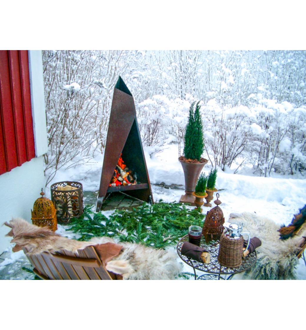 Tento krb tvarem připomínající indiánské obydlí "típí" je vyrobeno z nízkolegované oceli (corten steel), která se svou ochranou proti korozi (rez vytváří ochranný štít) hodí pro každou zahradní architekturu.
