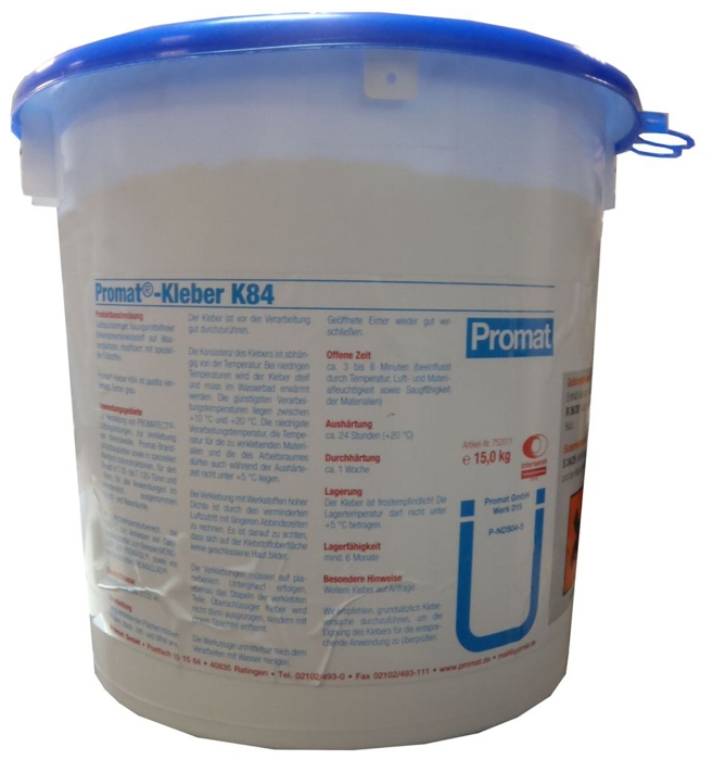 Neobsahuje organická rozpouštědla a používá se pro lepení deskových materiálů jako je kalciumsilikát, vermikulit nebo šamot navzájem k sobě či ke stěně. Vysokoteplotní pojivo K84 se nanáší zubovou stěrkou (výška zubu cca 3 mm) na oba povrchy, které jsou očištěné a lehce navlhčené.